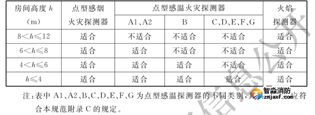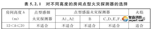 5.2.1 對不同高度的房間,可按表5.2.1選擇點(diǎn)型火災(zāi)探測器。